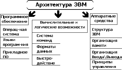 Под архитектурой ЭВМ понимается совокупность общих принципов организации аппаратно-программных средств и их характеристик, определяющая функциональные возможности ЭВМ при решении соответствующих классов задач.