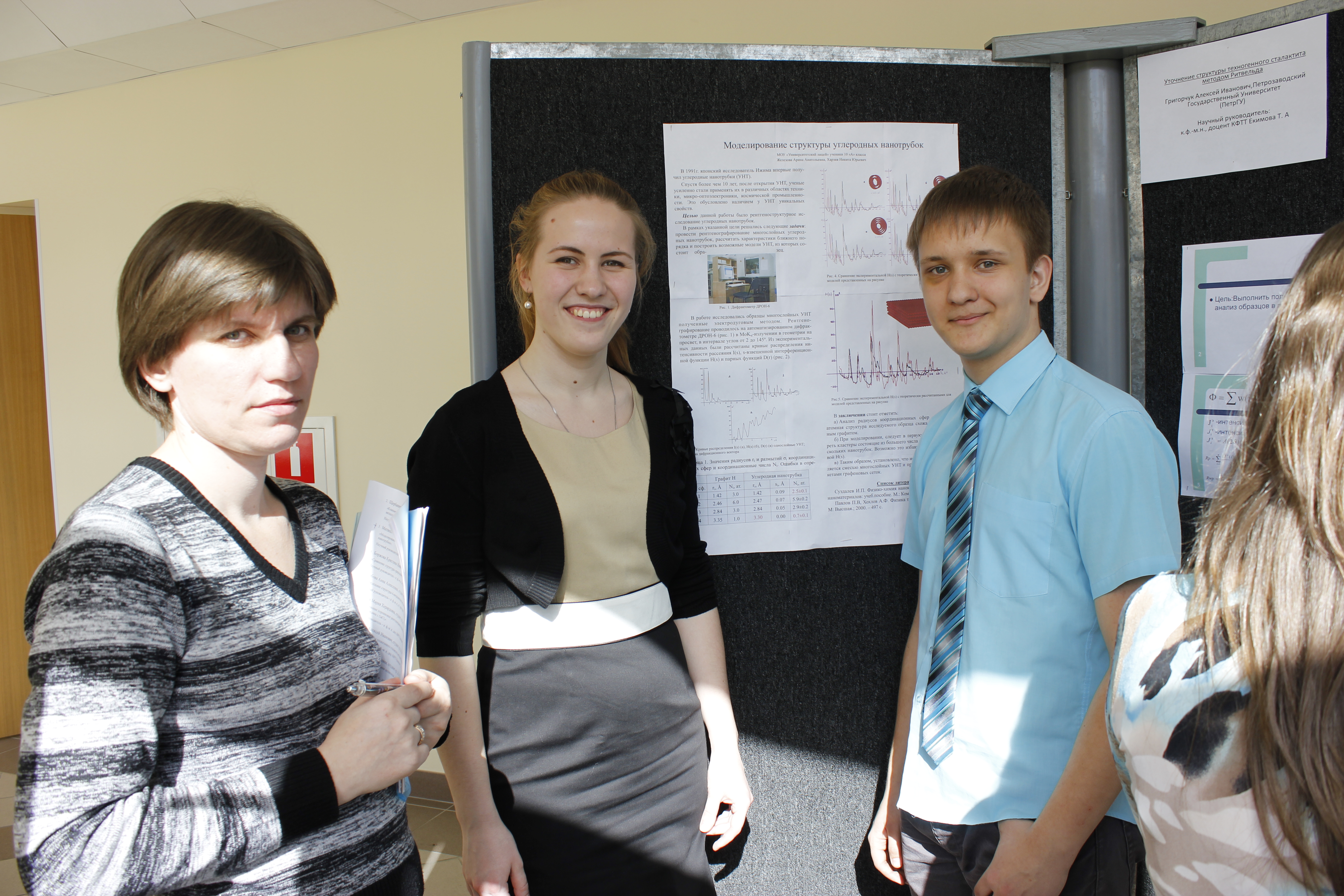 4. Железова Арина Анатольевна, Харзия Никита Юрьевич, учащиеся 10 «А» класса МОУ «Университетский лицей» г. Петрозаводска Доклад: Моделирование структуры углеродных нанотрубок Научный руководитель — к. ф.-м. н., ст. преп. КФТТ Логинов Д.В. |