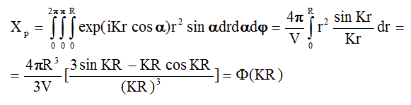 Аналогично Sin(KR)/KR определяет амплитуду волны, рассеянной при тех же условиях веществом, равномерно распределенным по поверхности сферы радиуса R.