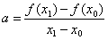 В отличие от метода Ньютона, можно заменить производную первой разделенной разностью, найденной по двум последним итерациям, т.е. заменить касательную секущей. При этом первый шаг итерационного процесса запишется так: