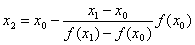 Для начала итерационного процесса необходимо задать x0 и x1, которые не обязательно ограничивают интервал, на котором функция должна менять знак; это могут быть любые две точки на кривой. Выход из итерационного процесса по условию