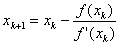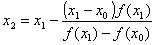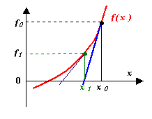 Уравнение касательной, проведенной из точки (x0, f0): y(x) = f /(x0)(x-x0) + f(x0) дает для y(x1) = 0 следующее выражение: