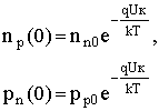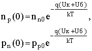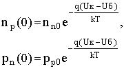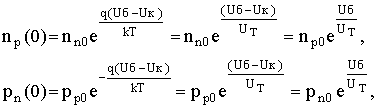Используя формулу (41) для граничных концентраций неосновных носителей заряда можно написать: