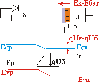 при обратном включении электронные уровни соседних областей получают дополнительное смещение друг относительно друга на