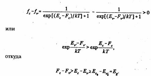 где Fc и Fv - квазиуровни Ферми для электронов в зоне проводимости и валентной зоне,