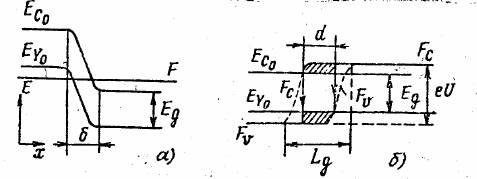 (обычно >4кТ) с обеих сторон p-n перехода(рисунок а) ,