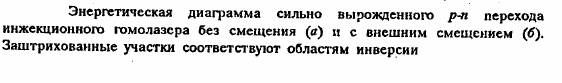 При выводе условия инверсии предполагалось, что минимальная энергия электронов в зоне проводимости совпадает с её дном, В действительности в инжекционных лазерах, в которых активная область, например, образуется в область р, сильно легированной цинком, рекомбинация осуществляется их хвоста зоны проводимости на акцепторный уровень(рисунок а (предыдущий))., Распределение электронов в зоне проводимости определяет спектр рекомбинационного излучения, вид которого при комнатной температуре дан на том же рисунке б. Хвост в зоне проводимости образуется за счёт флуктуации ширины запрещённой зоны в присутствии заряженной акцепторной примеси резонатора. В отличии от гетеролазера, в котором сильный волновой эффект обусловлен резким скачком показателя преломления на границе между узкозонным активным слоем и широкозонными эмиттерными слоями (n уменьшается при увеличении Eg), в гомолазере эффект оптического ограничения обусловлен несколько более слабыми факторами.