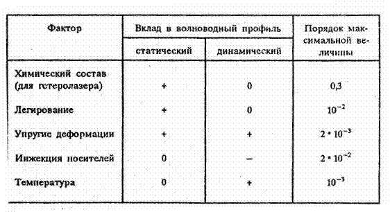В таблице приведены вклады различных факторов в показатель преломления гомолазера. Под динамическим вкладом понимается эффект, возникающий в режиме накачки.