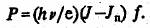 Мощность излучения в режиме стационарной генерации может быть оценена следующим образом. В когерентной излучение «перебрасывается» вся сверхпороговая накачка, т.е. величина пропорционально разность J-Jn. Число возникающих квантов лазерного излучения во всем активном элементе в единицу времени равна (1/e)( J-Jn) e – заряд электрона, а их суммарная энергия, генерируемая в единицу времени, равна этой величине, помноженной на энергию кванта hν. Во внешнюю среду выходит их доля, равная f – функция выхода. Таким образом мощность лазерного излучения равна: