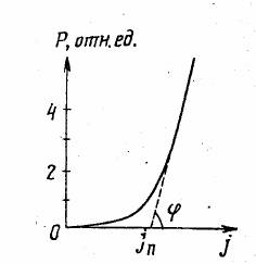 Определяемая из наклона ватт-амперной характеристики P(J), представлена на рисунке.