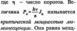 ности спонтанного излучения, испускаемого лазером непосредственно перед началом генерации (на пороге). Из формулы Ps следует что при двукратном превышении порога мощность генерации оказывается равной мощности спонтанного излучения на пороге, что на первый взгляд противоречит рисунку. В действительности противоречия нет, так как когерентная часть излучения испускается в относительно узком телесном угле и ассоциируется с выходным излучением, в то время как спонтанная часть испускается в произвольном направлении и его доля в выходном излучении относительно мала (при превышении порога на 10% доля спонтанного излучении составляет десятки процентов от суммарной выходной мощности).